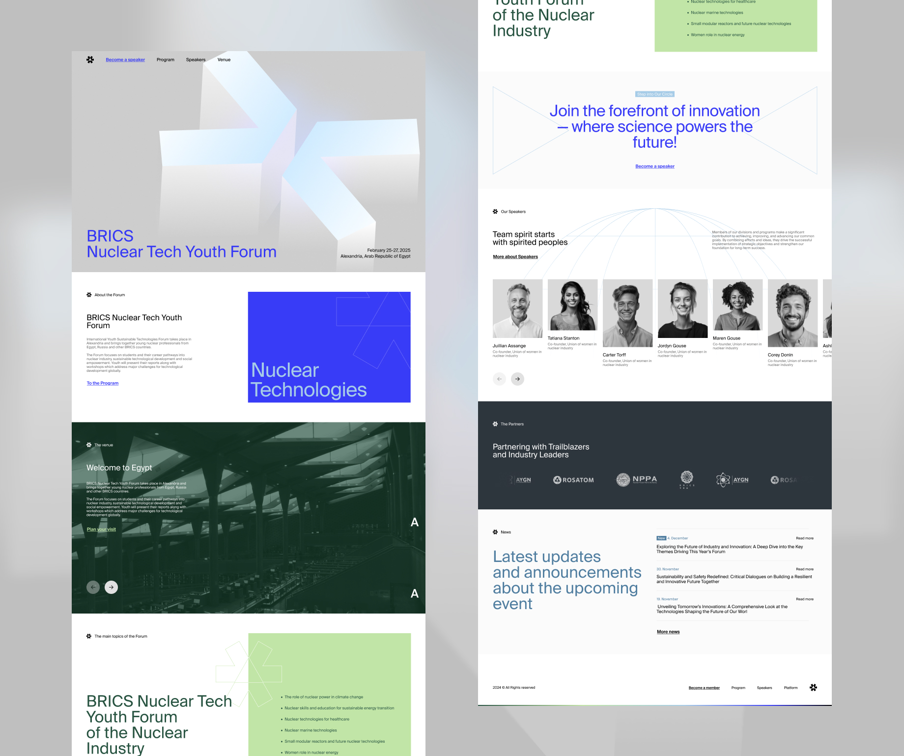 В основе проекта — точность, аккуратная типографика и современные UI-принципы, направленные на создание цифровой платформы, которая усиливает коммуникацию, повышает вовлечённость аудитории и ясно транслирует миссию форума как глобальной площадки для диалога об устойчивых технологиях и инновациях. Итогом стала цельная цифровая среда, поддерживающая долгосрочные коммуникационные задачи и укрепляющая позиционирование форума на международном уровне.